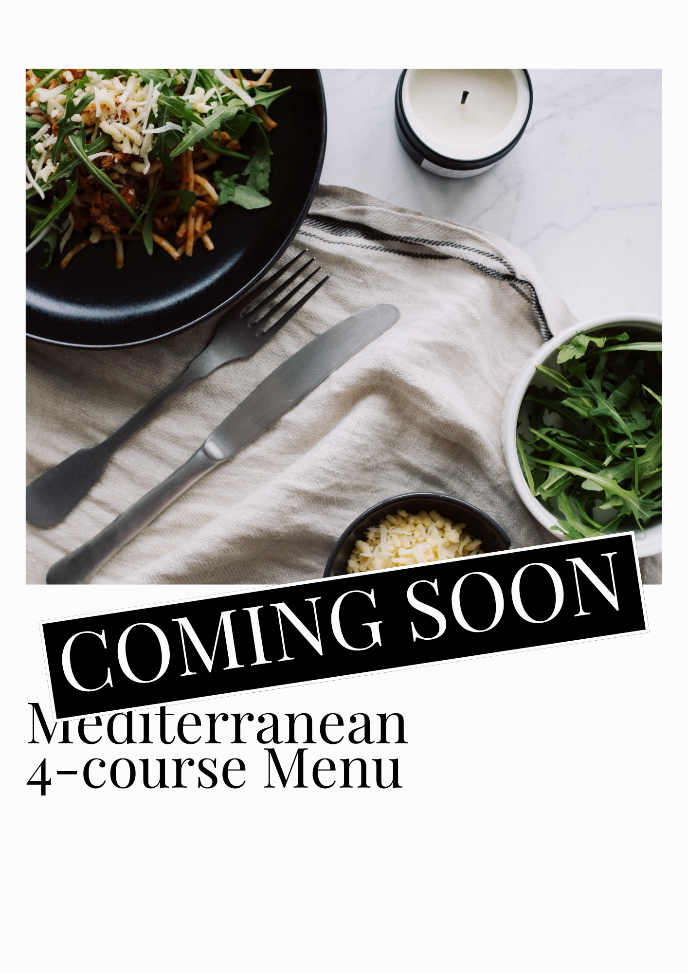Menu met 4 gerechten inclusief ingrediëntenlijsten en uitgebreide instructies.